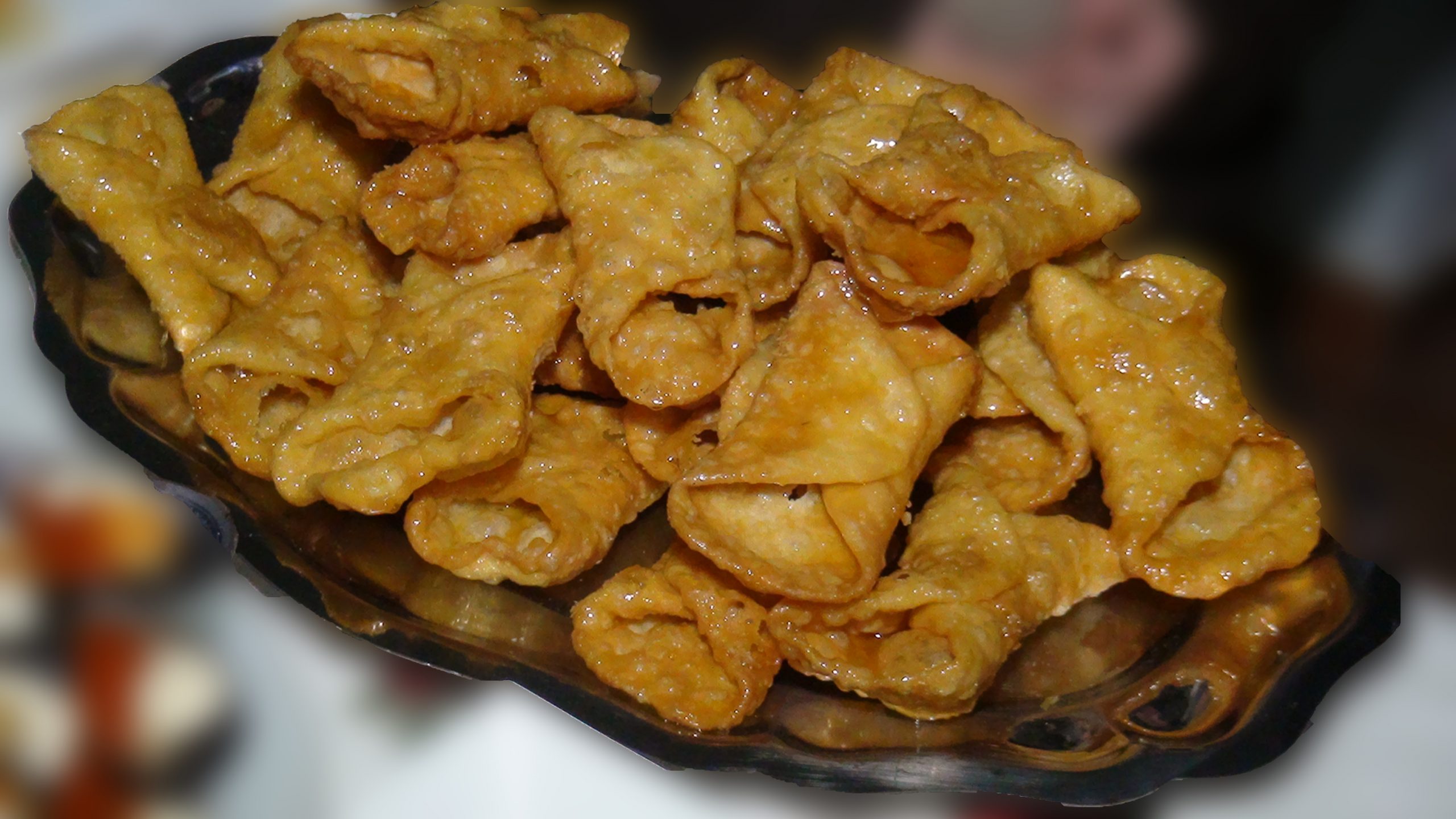 Elaboración: Se calienta el aceite de oliva con el molde dentro. Una vez bien caliente se saca el molde del aceite y se introduce en la masa hecha con los huevos, el agua y la harina. Se saca posteriormente y se introduce en el aceite hirviendo sin que el molde se hunda del todo en ese aceite.