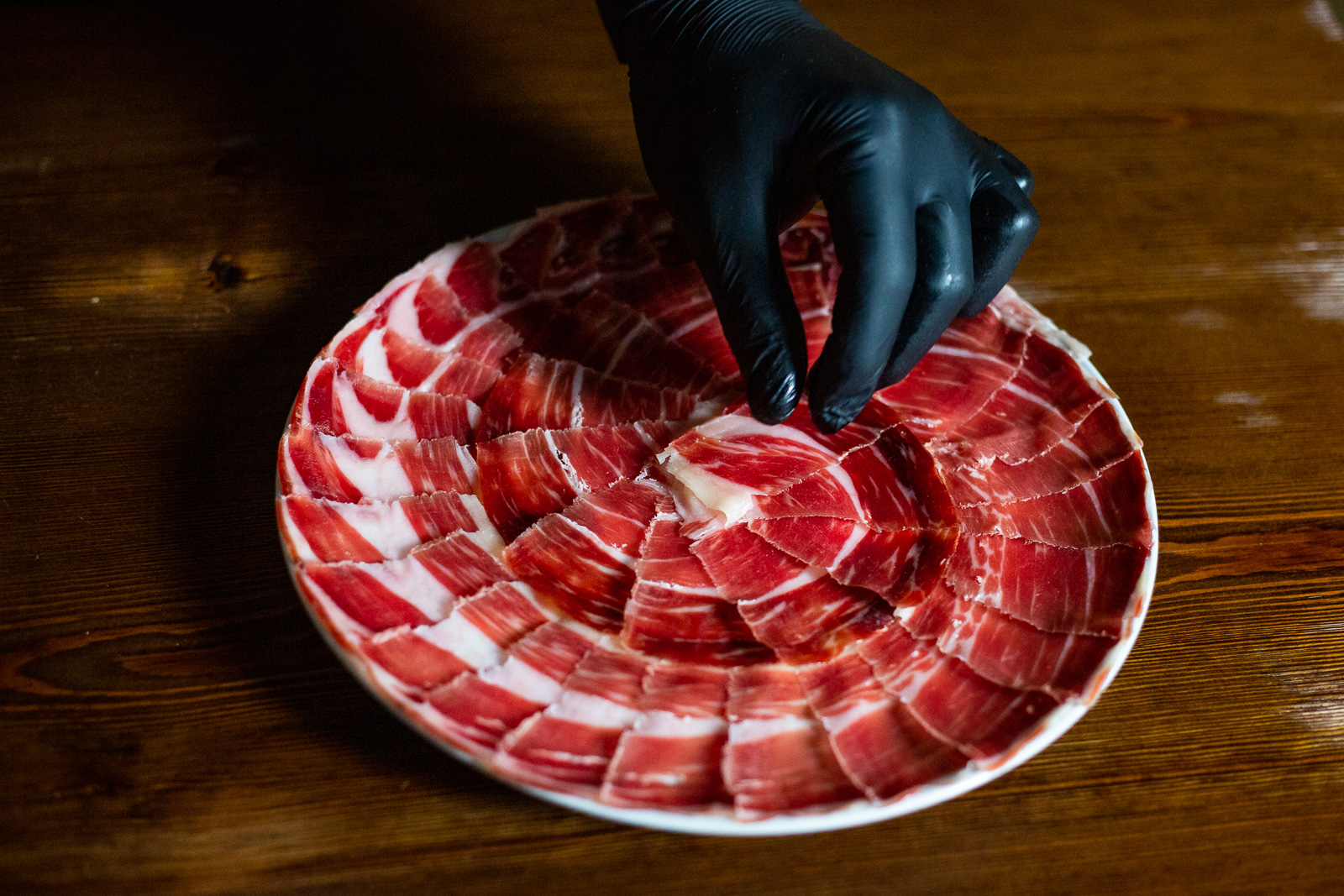Jamón, morcilla de sangre o lustre, morcilla de cebolla, chorizo blanco, salchichón y chorizo de patatas dulce o picante