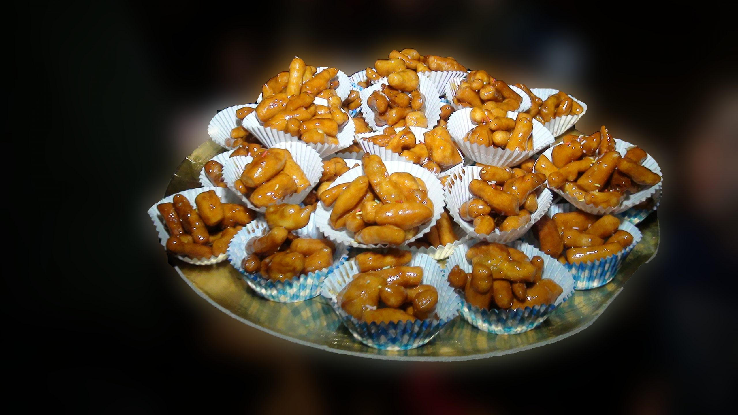 Elaboración: Se mezclan todos los ingredientes, se baten y amasan. A continuación se fríen y se bañan con miel.
